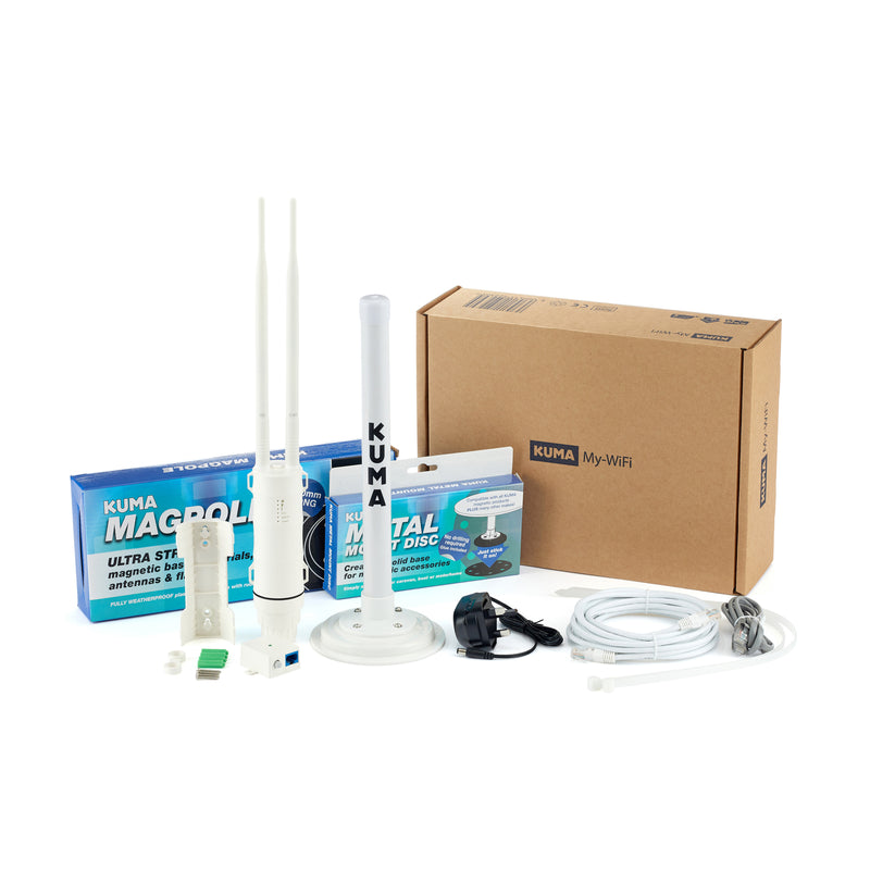 Experience reliable, ultra-fast Wi-Fi even in the most remote locations with the KUMA My-WiFi Extender Kit. Perfect for caravans, motorhomes, boats, and garden outbuildings.